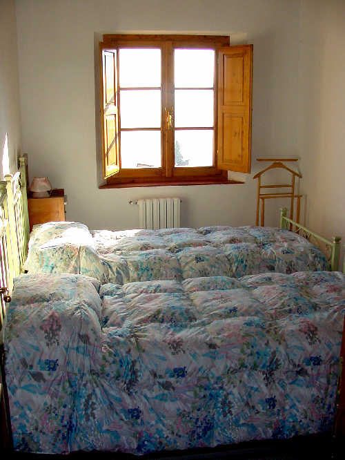 The appartment is at the attico floor of the villa in the picture. It is composed of a full fournished kitchen, a sleeping room with a double bed and a second sleeping room with 2 singles beds and a bathroom with shower. The two sleeping rooms have a magnificent view on the valley (sunrise direction) and the kitchen has a view to another valley (sunset direction), for this reason the apartment is called "Bellavista". The apartment can host 4 people.