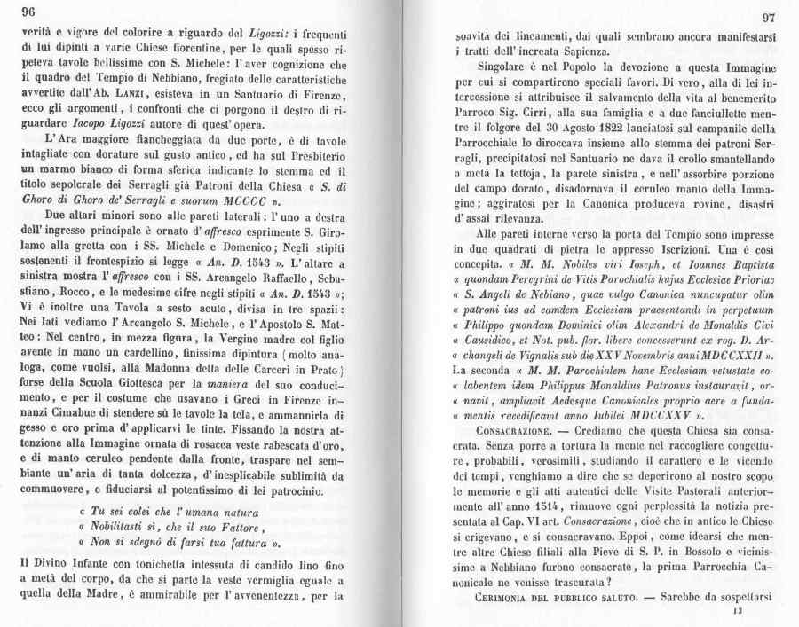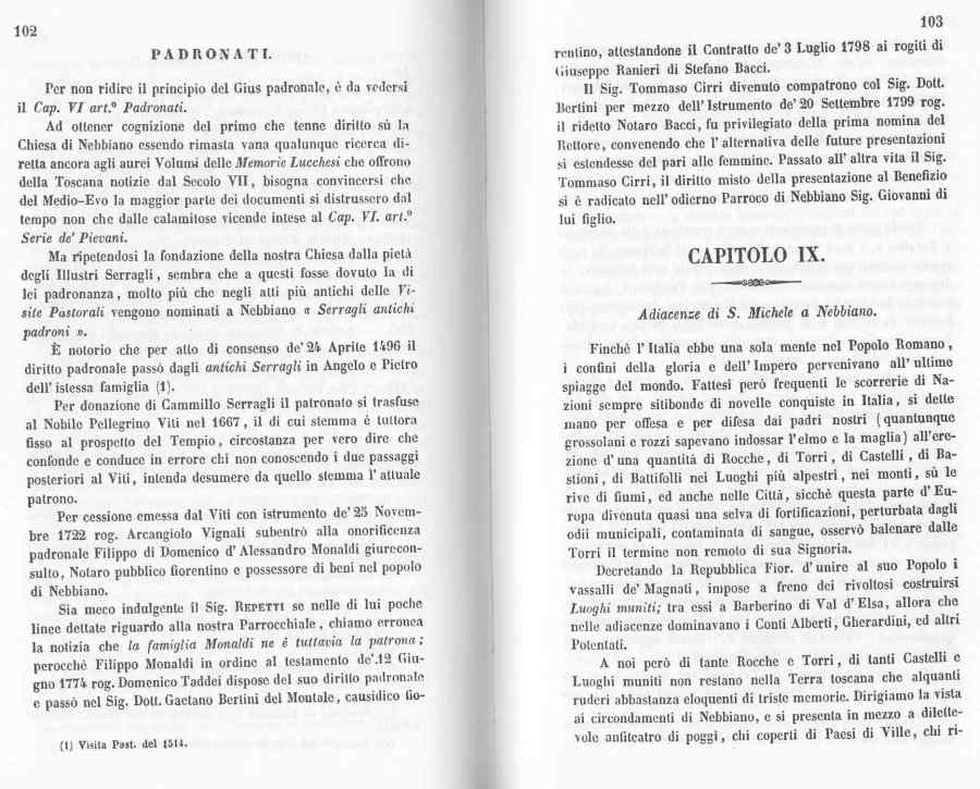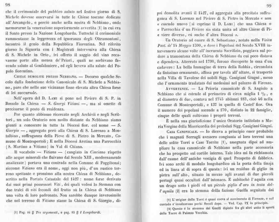 Due to the interest of a web navigator who inquiried me on the history of the Church of San Michele Arcangelo in Nebbiano I propose in this page some excerpt of the "MEMORIE del Piviere di S. Pietro in Bossolo e dei Paesi Adiacenti Nella Valle d'Elsa" collected by Luigi Biadi edited by Giovanni Battista Campolmi in 1848. They are written in a arcaic italian.