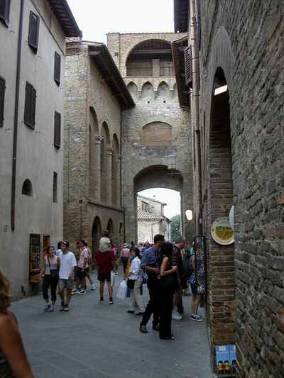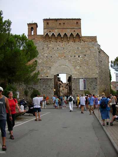 The main gate of San Gimignano. The village is overcrowded by tourists all year round. It is far better to visit it after dinner.