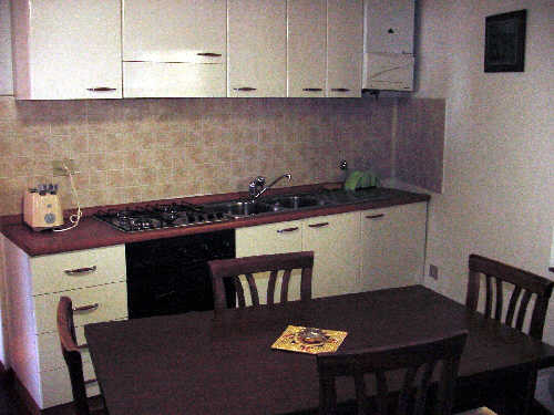 the full fournished kitchen, equipped with espresso coffee machine, glasses, plates, forks, spoons, baking sheets and everything you need to cook great repas (anyway in Barberino there are 3 very good restaurants few steps from the apartment and a bakery store just round the corner), there is also the fridge and electric owen and the television (the only foreign channel are MTV and France 2)