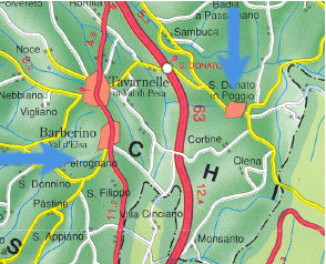 From Barberino go to Tavarnelle Val di Pesa and Follow the signalization to San Donato in Poggio. From San Donato you can continue your tour to visit Castellina in Chianti, then Radda in Chianti and Gaiole in Chianti.